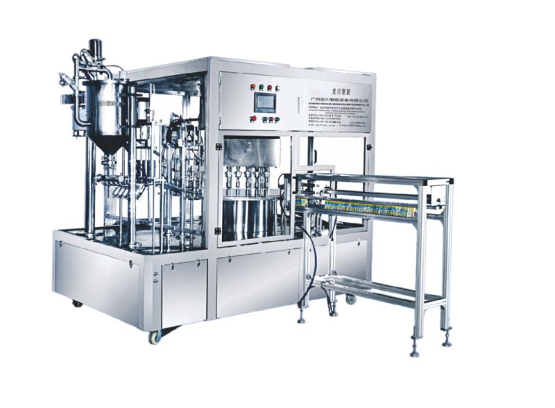 全自動自立袋灌裝旋蓋一體機,適用于果醬、果凍果汁、酸奶豆?jié){、等液體醬料類的高速包裝。自動完成上袋、吹氣、灌裝、上蓋、旋蓋、成品輸出的工序。