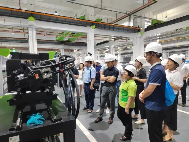第三階段是赴廣東伊之密精密機械股份有限公司(簡稱“伊之密”)參訪交流,在伊之密注塑機事業(yè)部市場總監(jiān)彭德強的帶領(lǐng)下,參觀了數(shù)字化工廠及全球創(chuàng)新中心。