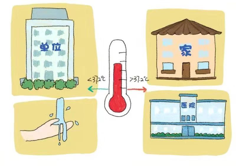 進(jìn)入辦公樓前自覺接受體溫檢測(cè),體溫正??扇霕枪ぷ鳎⒌叫l(wèi)生間洗手。若體溫超過37.2℃,請(qǐng)勿入樓工作,并回家觀察休息,必要時(shí)到醫(yī)院就診。