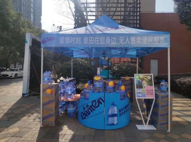 廣州一社區(qū)的景田桶裝水無(wú)人售賣點(diǎn)