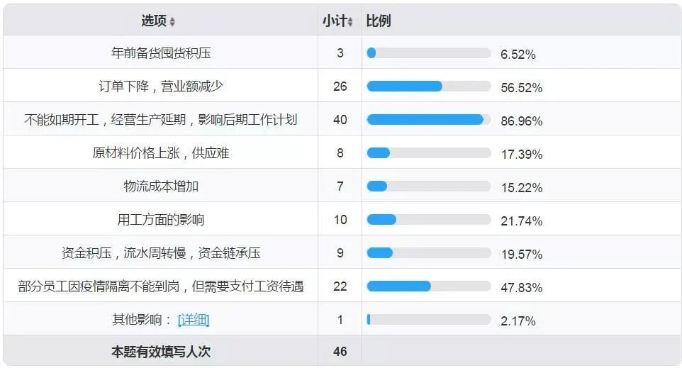 此項(xiàng)調(diào)查是詳細(xì)了解疫情對(duì)企業(yè)影響的具體方面,此問(wèn)題設(shè)置為根據(jù)影響程度最多可選3項(xiàng)。結(jié)果如下: