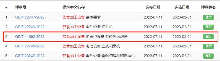 另有一項(xiàng)新國標(biāo)《飲食加工設(shè)備 組合型設(shè)備 旋轉(zhuǎn)熱風(fēng)烤爐》正式實(shí)施。