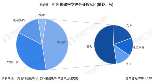 表面上看,國(guó)內(nèi)市場(chǎng)逐漸形成了“國(guó)產(chǎn)”替代“進(jìn)口”的扭轉(zhuǎn)現(xiàn)象,但從我國(guó)機(jī)器視覺系統(tǒng)成本結(jié)構(gòu)來看,就會(huì)發(fā)現(xiàn),零部件環(huán)節(jié)的占比超過60%,底層軟件系統(tǒng)開發(fā)占比達(dá)到19.88%。其中,元器件成本中,相機(jī)占比最大,達(dá)到27.11%。